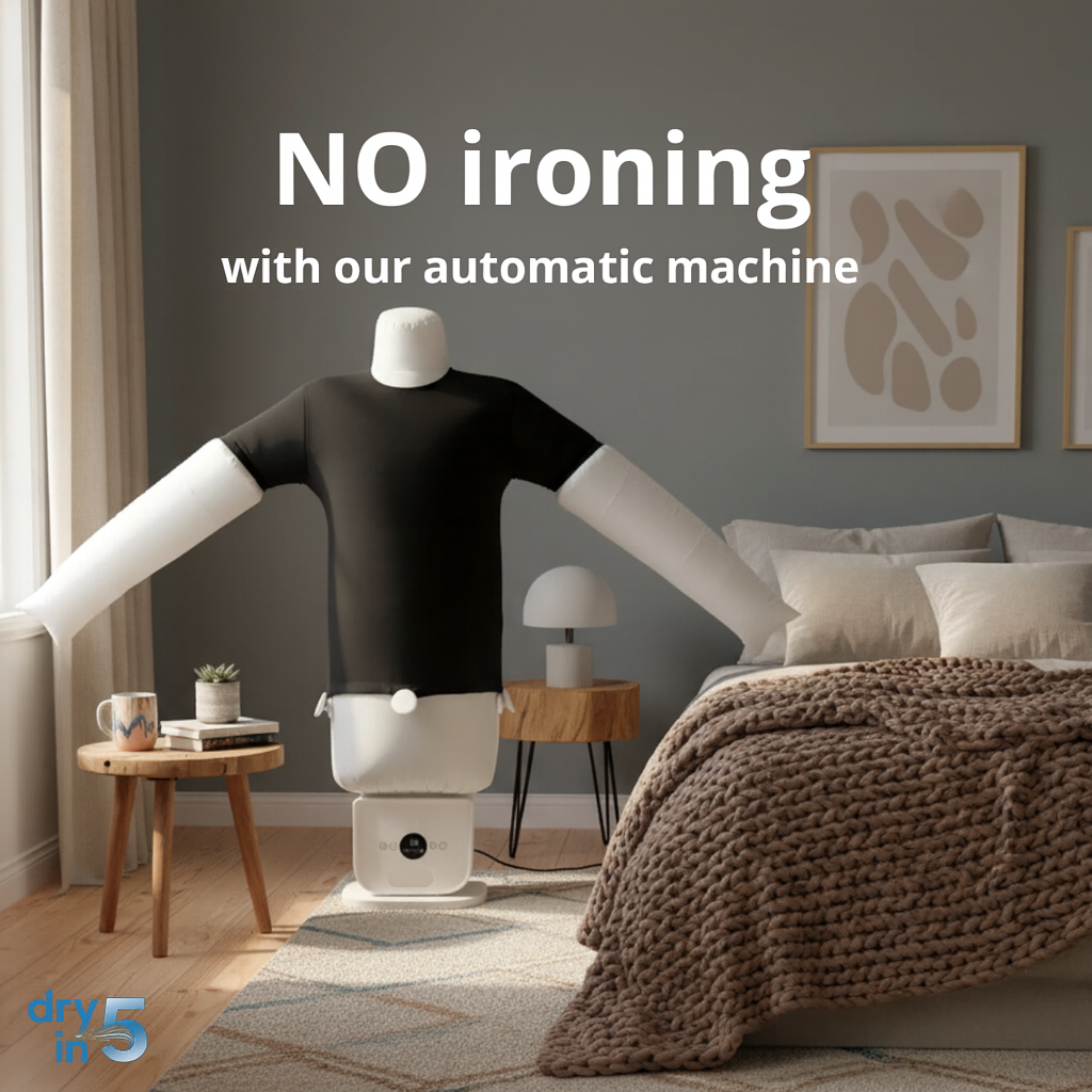Experience the future of ironing with our innovative machine that effortlessly dries and irons your clothes in just 5 minutes, giving you professional results at home.